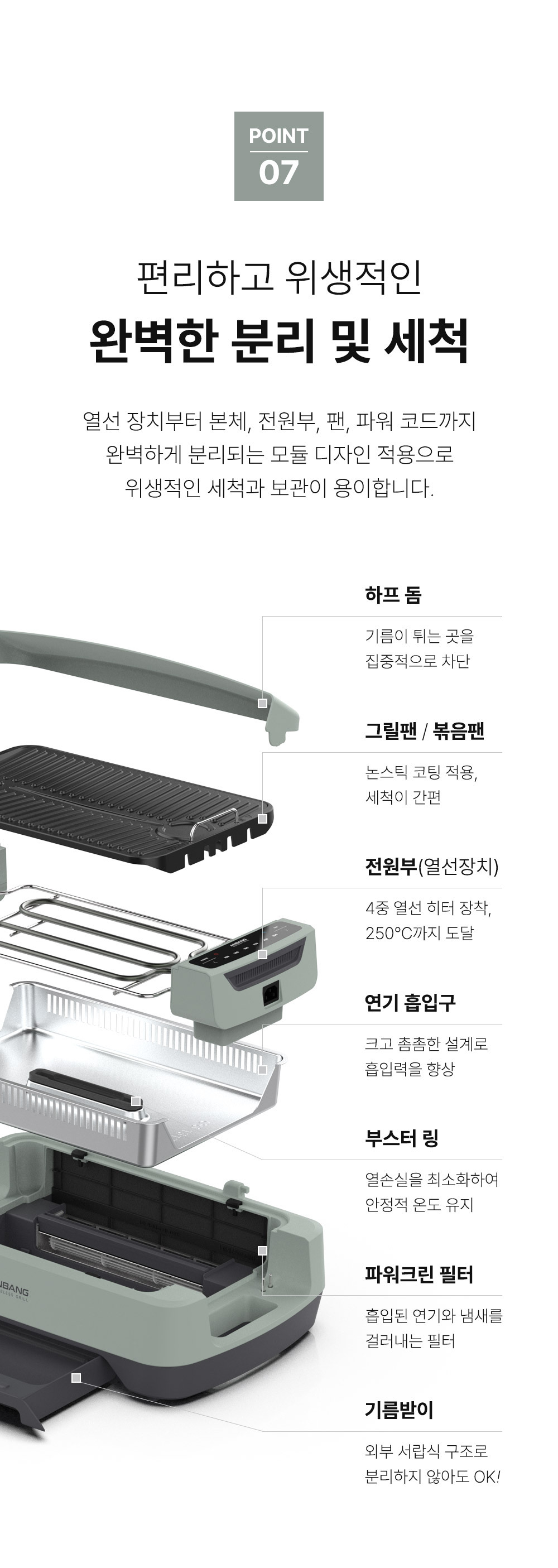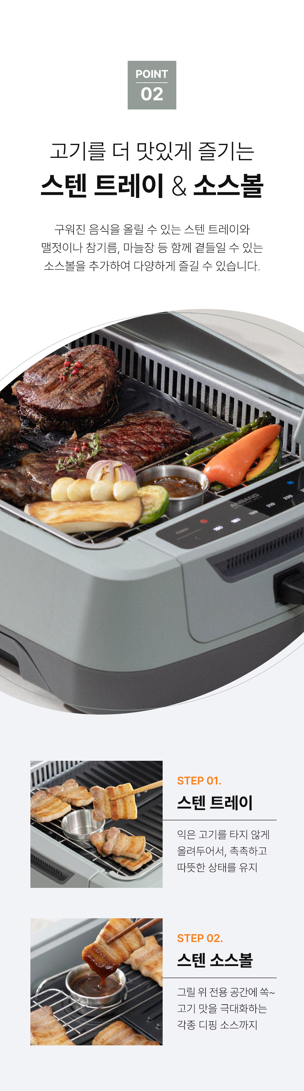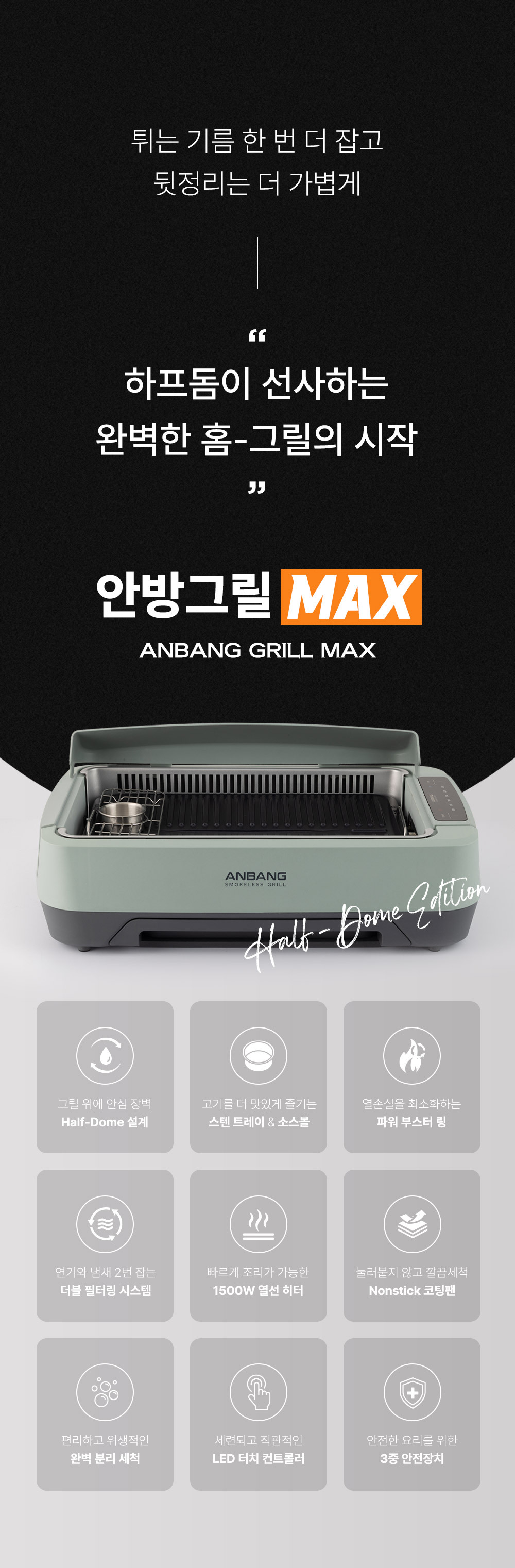∎ 제품특장점 :하프돔 설계 / 스텐 트레이 & 스텐 소스볼 / 파워부스터링 / 더블 필터링 시스템 / 4중열선히터 / Nonstick 코팅팬 / 완벽분리 세척 / LED터치 컨트롤러 / 3중안전장치