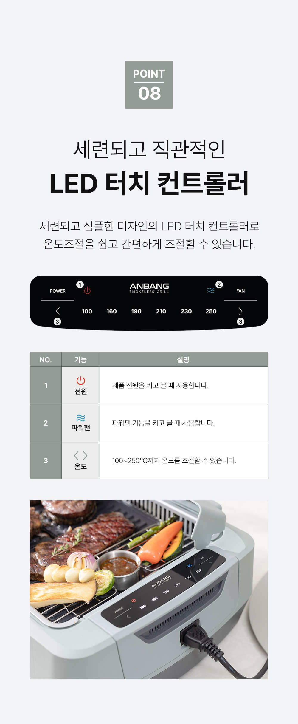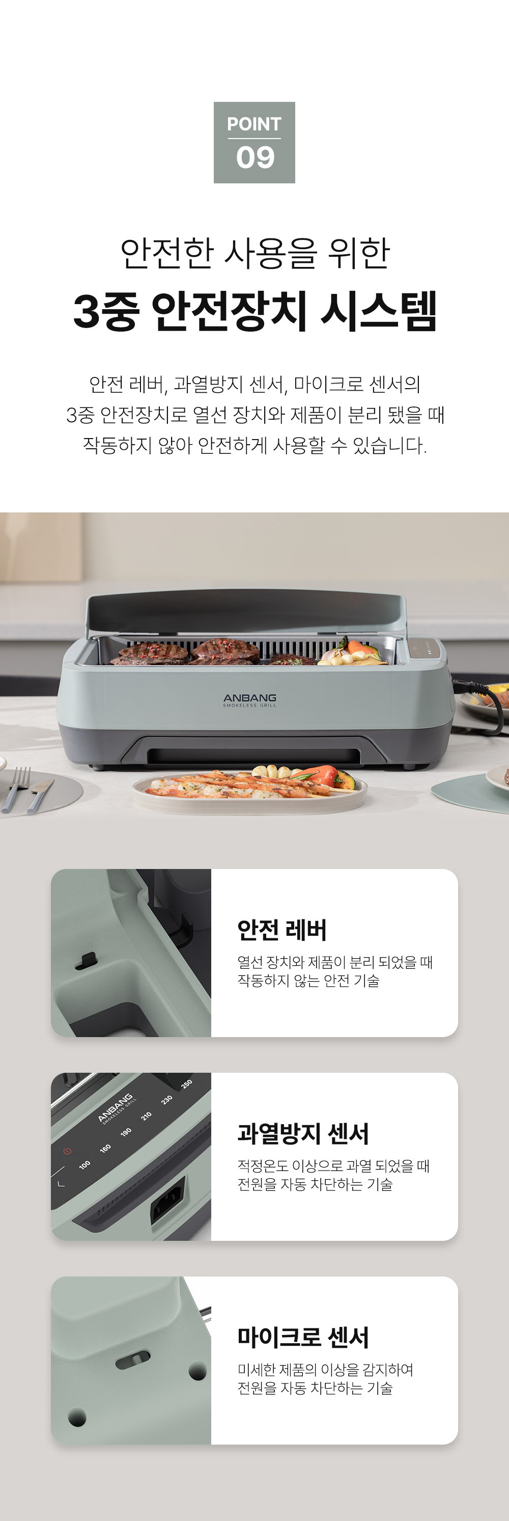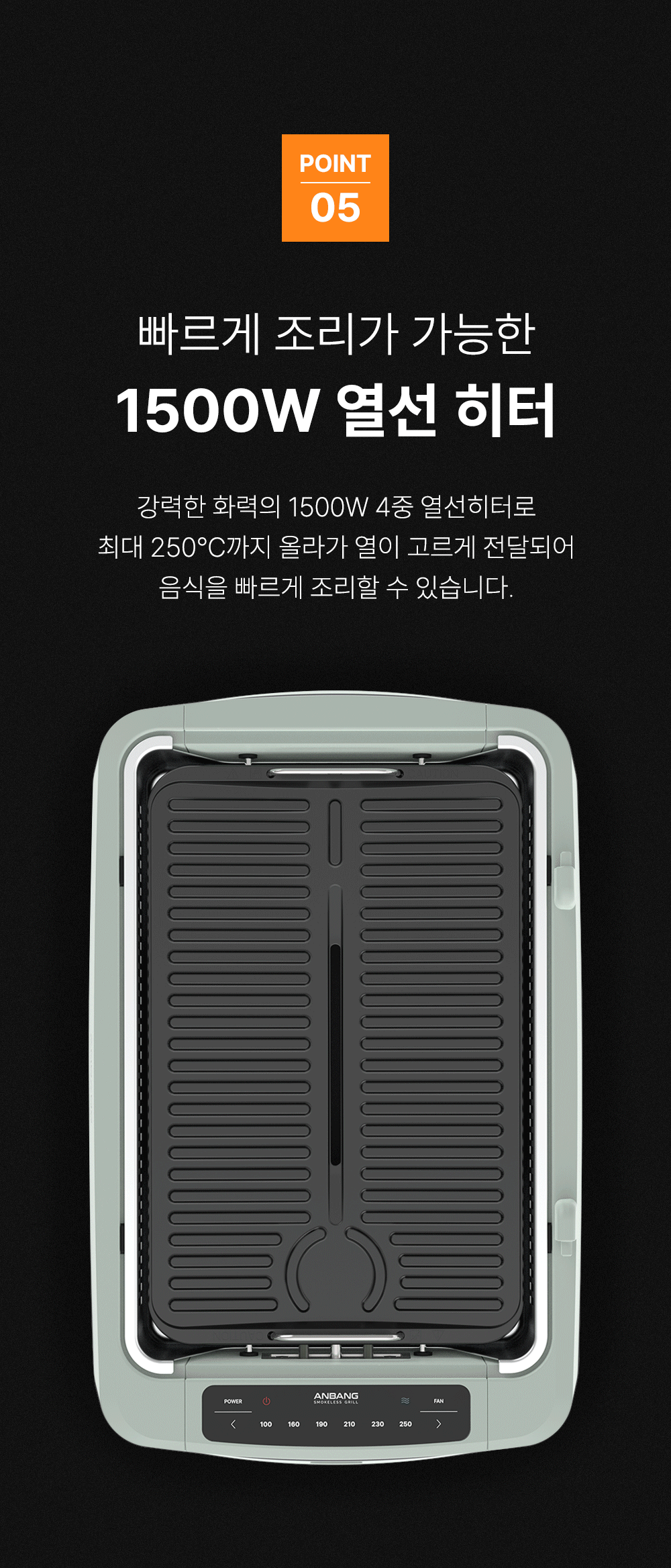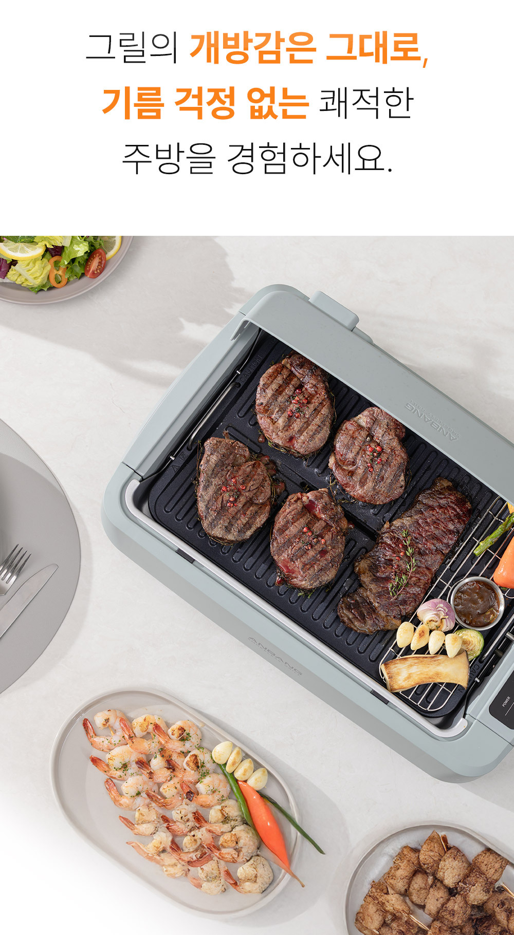 ∎ 제품특장점 :하프돔 설계 / 스텐 트레이 & 스텐 소스볼 / 파워부스터링 / 더블 필터링 시스템 / 4중열선히터 / Nonstick 코팅팬 / 완벽분리 세척 / LED터치 컨트롤러 / 3중안전장치